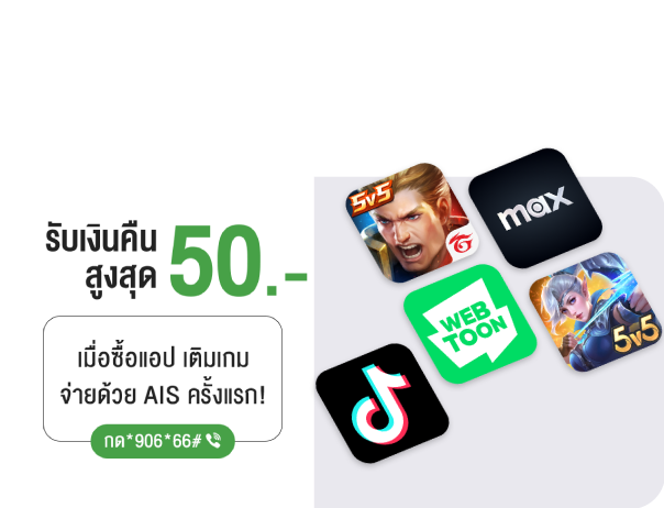 ซื้อแอป เติมเกม บน App Store ใช้จ่ายผ่าน AIS ครั้งแรก รับเงินคืน 50 บาท