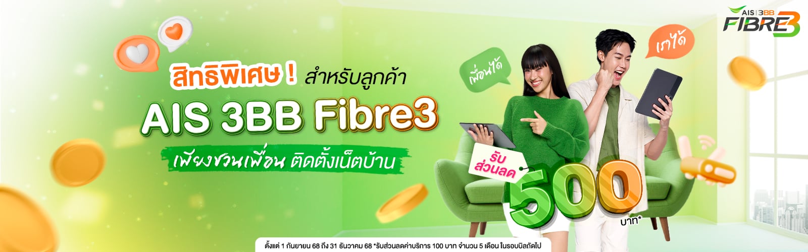 เน็ตบ้านแรง 1Gbps ทั่วทุกห้อง พร้อมความบันเทิงคุ้มสุด คุ้มมากกว่า!