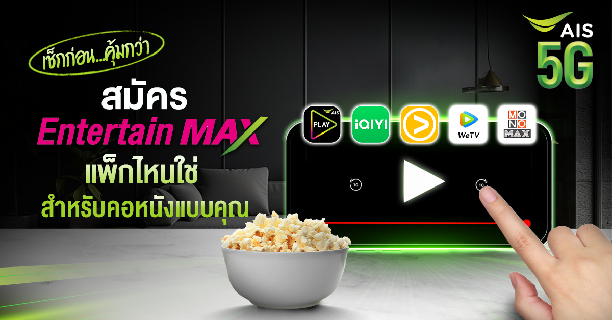 คุ้มค่ายืน 1 โปรรายเดือน AIS 5G Max Speed เร็วแรงเต็มแม็กซ์ พร้อมความบันเทิงแห่งอนาคต