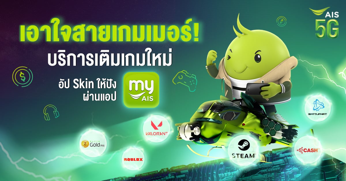 เอาใจสายเกมเมอร์! ไม่ว่าจะค่ายไหนก็เติมเกมอัป Skin เทพได้ง่าย ๆ ผ่านแอป myAIS ช่องทางเติมเกมใหม่สำหรับเกมเมอร์ เครือข่ายไหนก็เติมเกมได้ง่าย ๆ มันส์แน่นอน