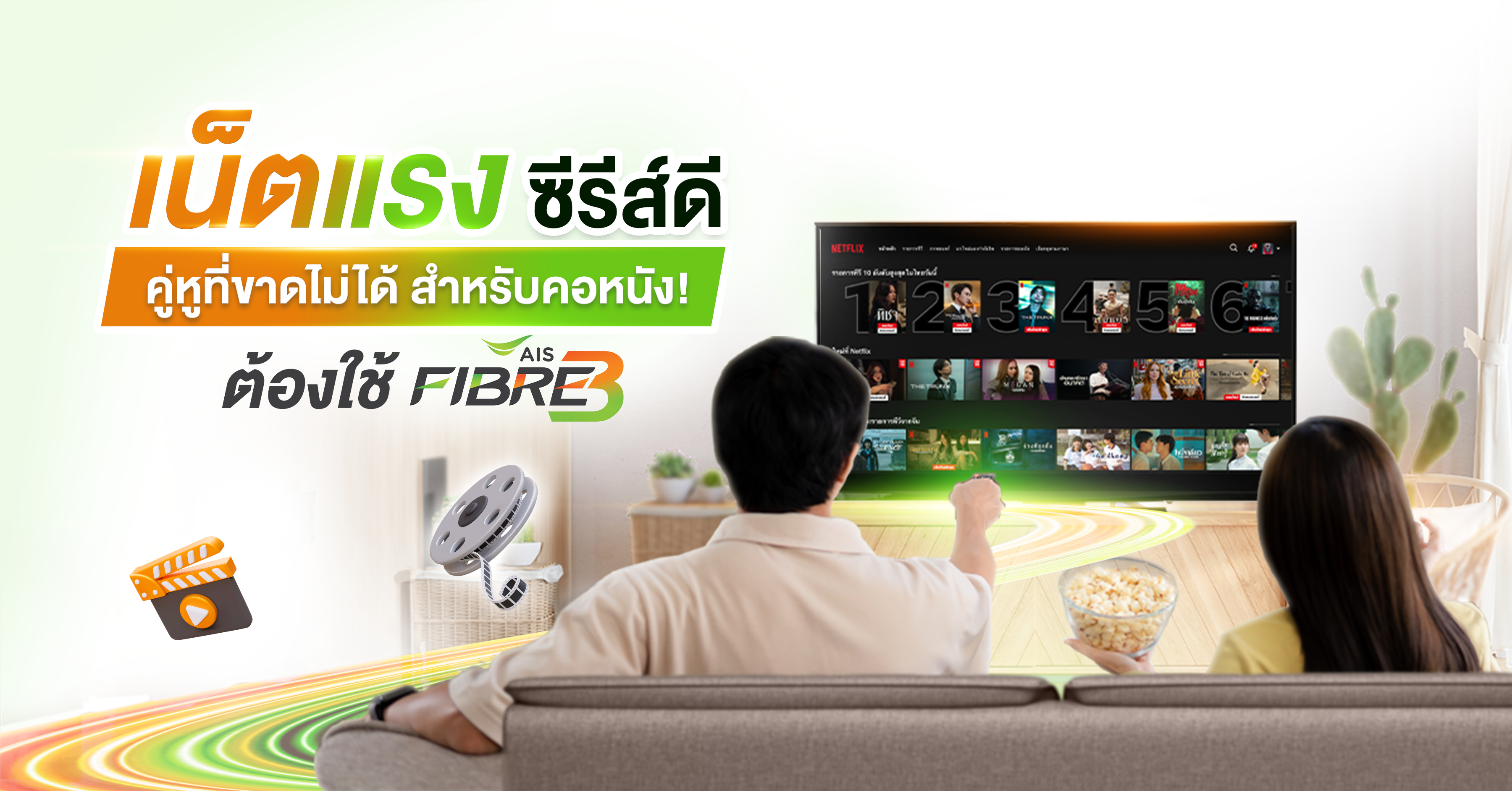 เน็ตบ้านที่ดีต่อใจ ต้องใช้ AIS Fibre3 Netflix Lover ที่ให้เพื่อน ๆ ใช้อินเทอร์เน็ตบ้านในราคาเริ่มต้นเพียง 699 บาทต่อเดือน! และความเร็วเริ่มต้นที่ 500/500 Mbps พร้อมรับชมความบันเทิงจาก Netflix ได้อย่างลื่นไหลไม่มีสะดุด สิ่งที่ทำให้คู่นี้ “เข้ากันที่สุด”