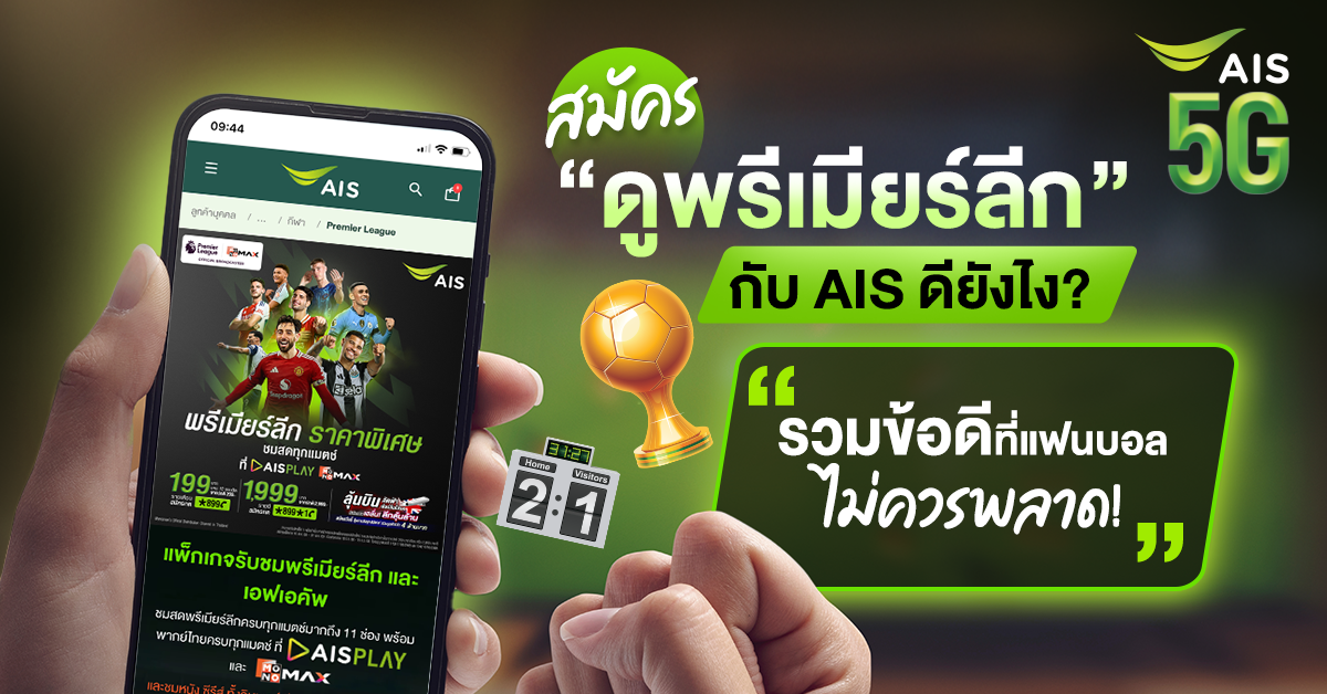 สมัครเลยดูพรีเมียร์ลีก 2025/26 กับ AIS PLAY และ MONOMAX ดูครบ 380 แมตช์ + เอฟเอคัพ คมชัดระดับ Full HD พร้อมสิทธิพิเศษมากมายทั้งลูกค้าเก่าและใหม่ เริ่มเพียง 199 บาท/เดือน