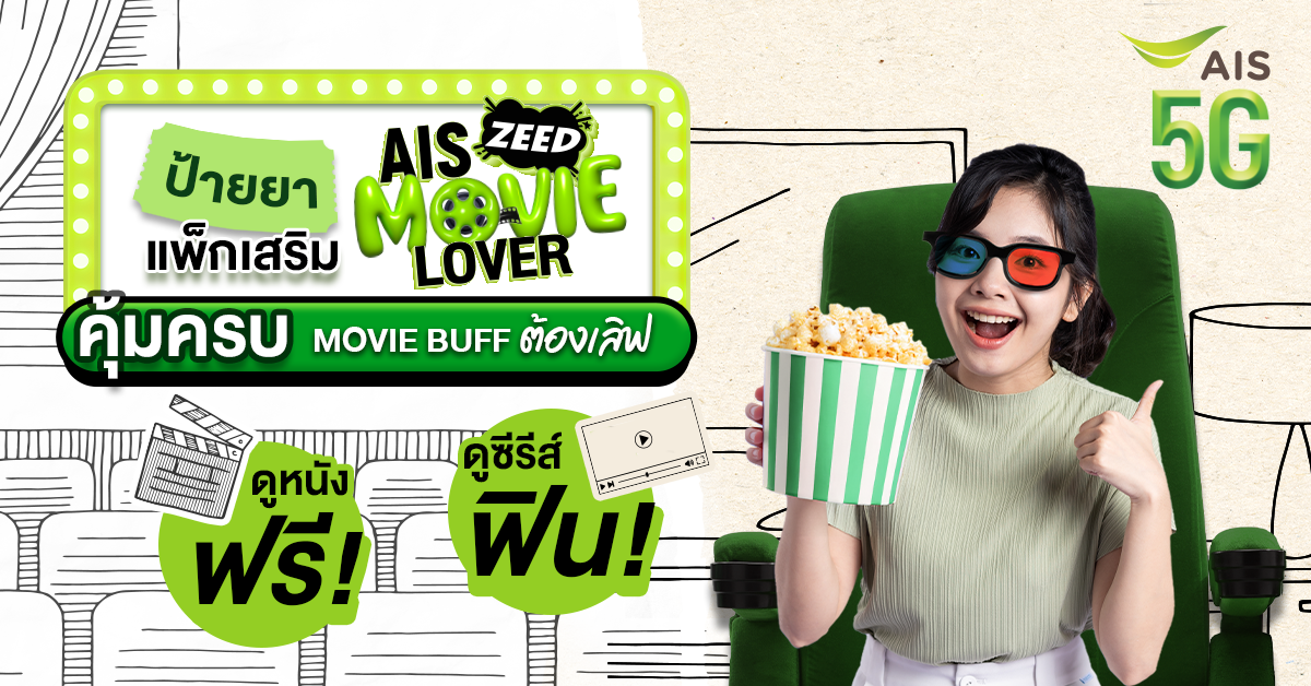 แพ็กเกจเสริมสุดพิเศษเพื่อวัยจี๊ดที่รักการดูหนังโดยเฉพาะ เพียง 299.-/เดือน พร้อมรับสิทธิ์ดูหนังฟรีในโรงทุกเดือนและฟินกับซีรีส์ในแอปแบบไม่มีสะดุด บนความเร็วเน็ต 5G คุ้มครบในแพ็กเดียวที่ Movie Buff ต้องมีเลยครับ