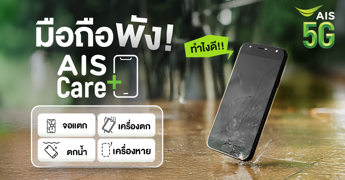 ดูแลมือถือครบทุกปัญหา ทั้งตกน้ำ จอแตก หรือหาย ด้วยบริการช่วยเหลือแบบเบาใจ ส่งถึงบ้าน ไม่ต้องเดินทาง สมัครง่ายกับ AIS Care+