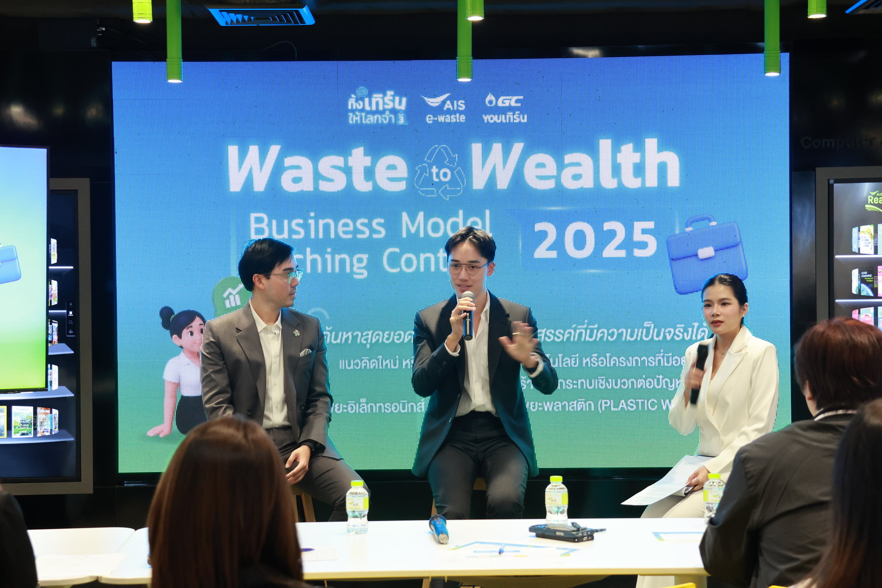 จากผู้ประกอบการที่เข้าร่วมโครงการ AIS Infinite SMEs สู่ภารกิจสร้างแรงบันดาลใจให้ผู้ประกอบการรุ่นใหม่ “ซัน นพรุจ” และ “คิว รุจิภาส” สองพี่น้อง ทายาทธุรกิจจาก TLH AUTOGLASS ได้ใช้เวทีพูดคุยภายในโครงการ Waste to Wealth: Business Model Pitching ที่เปิดให้น้องนักศึกษาส่งไอเดียธุรกิจเข้าประกวดในการต่อยอดธุรกิจจากขยะอิเล็กทรอนิกส์ และขยะพลาสติกให้นำกลับมาสร้างมูลค่าได้