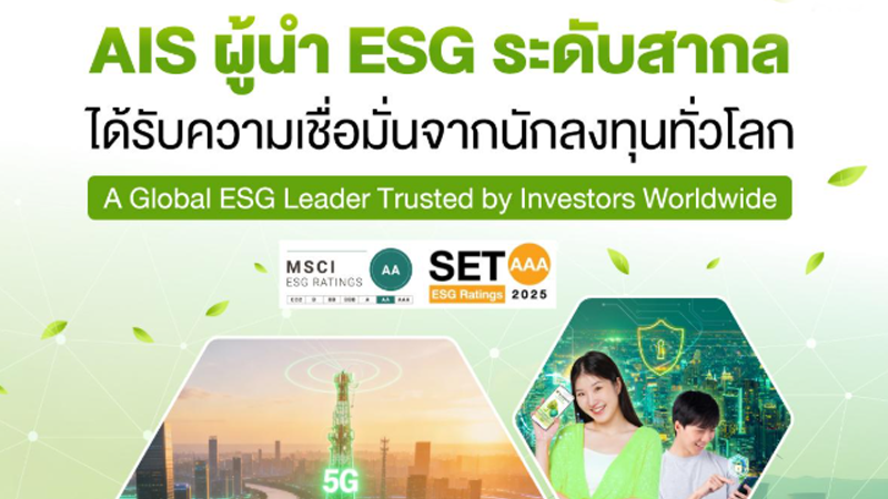 AIS ตอกย้ำความเป็นผู้นำด้านธุรกิจอย่างยั่งยืน ได้รับการประเมิน ESG ระดับสูงจาก MSCI และตลาดหลักทรัพย์ฯ สะท้อนความเชื่อมั่นจากนักลงทุนและตลาดทุนทั้งในและต่างประเทศ