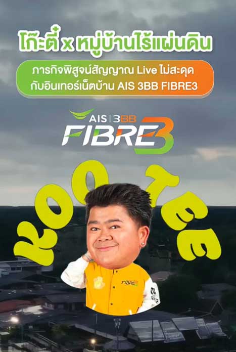 นอกจากการสื่อสารผ่านภาพยนตร์โฆษณาแล้ว AIS 3BB FIBRE3 ยังต่อยอดแคมเปญด้วยกิจกรรม Live Streaming จากสถานที่จริงในหมู่บ้านไร้แผ่นดิน เพื่อพิสูจน์ศักยภาพของโครงข่ายอินเทอร์เน็ตบ้านที่ครอบคลุม เร็ว แรง และเสถียร ด้วยการถ่ายทอดสดแบบ Non-Stop นาน 7 ชั่วโมงเต็ม โดยมีครีเอเตอร์ชื่อดัง โก๊ะตี๋ อารามบอย ร่วมใช้ชีวิตและทำกิจกรรมภายในชุมชน พร้อมพาผู้ชมสัมผัสวิถีชีวิตของคนในหมู่บ้านหลังมีอินเทอร์เน็ตบ้านเข้าถึง ซึ่งช่วยต่อยอดทั้งการสื่อสาร การสร้างสรรค์คอนเทนต์ และโอกาสทางการค้าขายของคนในพื้นที่ได้อย่างเป็นรูปธรรม และภายในไลฟ์ยังมีแขกรับเชิญพิเศษร่วมสร้างสีสันและทำกิจกรรมแบบเรียลไทม์ตลอดการถ่ายทอด อาทิ นัท นิสามณี, นิกกี้ ณ ฉัตร และ จาตุรงค์ มกจ๊ก ซึ่งช่วยยกระดับประสบการณ์การรับชมไลฟ์ผ่าน Net SmartBackUp ด้วยระบบเราเตอร์ 2 ระบบ ทำให้เชื่อมต่ออินเทอร์เน็ตไฟเบอร์และเน็ตมือถือ ช่วยให้ภาพคมชัด ลื่นไหล และต่อเนื่อง ไม่ว่าพื้นที่ที่หลายคนอาจเคยเชื่อว่าอยู่ไกล แต่ความเป็นไปได้ของเทคโนโลยีก็สามารถสร้างโอกาสแห่งความเป็นไปได้ให้กับทุกคนผ่านอินเทอร์เน็ตบ้านที่ดี
