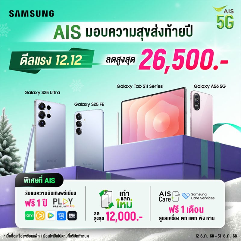 AIS ต้อนรับช่วงเวลาแห่งการเฉลิมฉลอง ยกขบวนความฟินส่งมอบ “ความสุขแบบจัดเต็ม” แทนคำขอบคุณและความไว้วางใจจากลูกค้าทั่วประเทศในทุกเซ็กเมนต์ ยกทัพของขวัญปีใหม่ มอบส่วนลดและสิทธิพิเศษมากมาย เพื่อต้อนรับเทศกาลปีใหม่ที่กำลังจะมาถึง สร้างสีสัน ความคึกคัก รอยยิ้ม และความอุ่นใจให้ทุกการใช้งาน ตลอดช่วงวันหยุดยาว อาทิ แคมเปญ “AIS 1 POINT 12 WEEKS 12 WOW!” ใช้ เอไอเอส พอยท์ 1 คะแนน แลกความว้าว