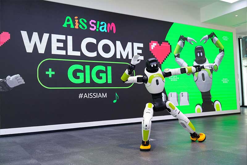 AIS SIAM คอมมูนิตี้สเปซของชาว Gen-C ใจกลางสยาม พื้นที่ของคนชอบเล่นจนได้เป็นตัวจริง ตอกย้ำการเป็นพื้นที่แห่งความคิดสร้างสรรค์และโชว์เคสนวัตกรรมดิจิทัล ต้อนรับ “น้องจีจี้” หุ่นยนต์บริการ AI อัจฉริยะ พนักงานน้องใหม่หัวใจโรบอท ที่สามารถสื่อสารภาษาไทยได้อย่างลื่นไหลและเป็นธรรมชาติ และสามารถให้ข้อมูลเบื้องต้นเกี่ยวกับสินค้าและบริการต่างๆ ของ AIS SIAM