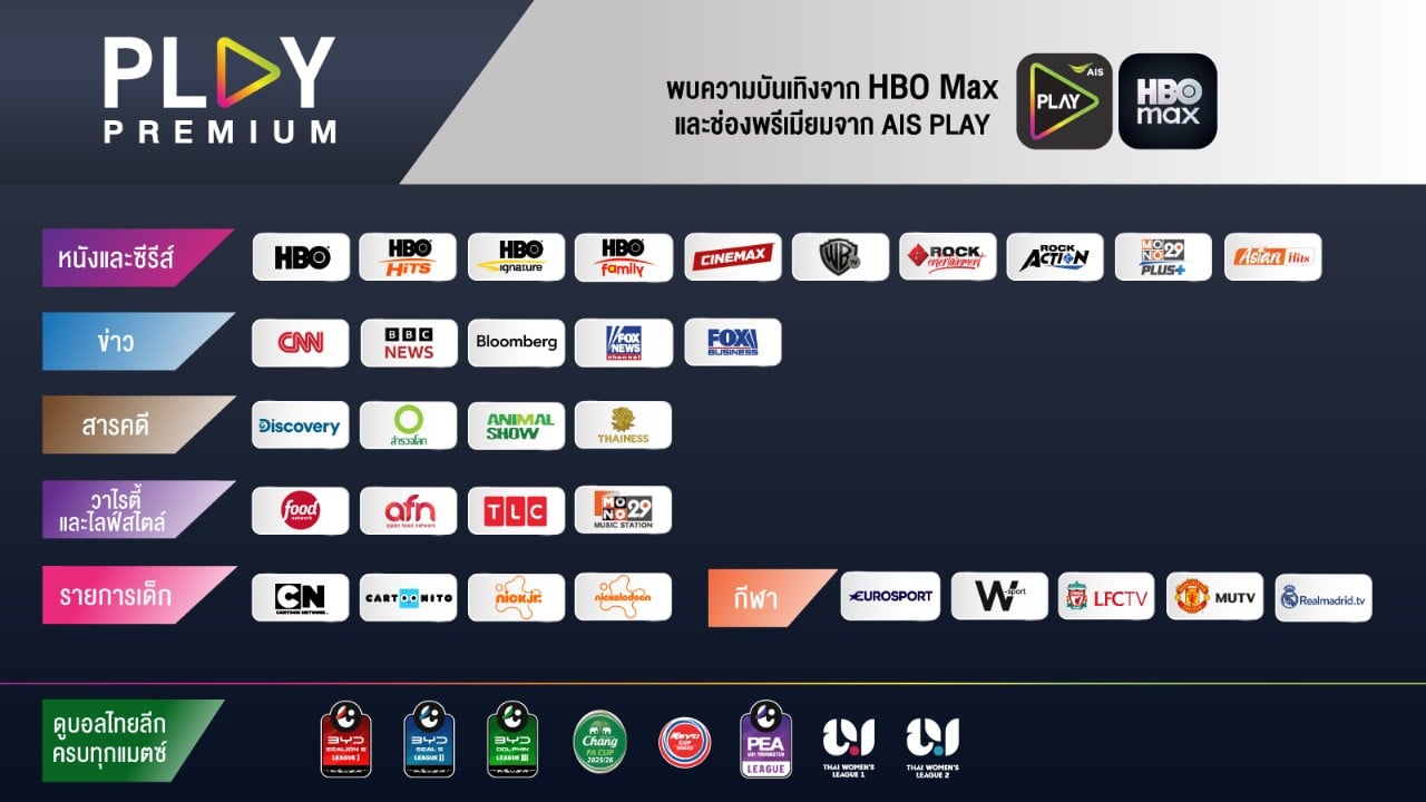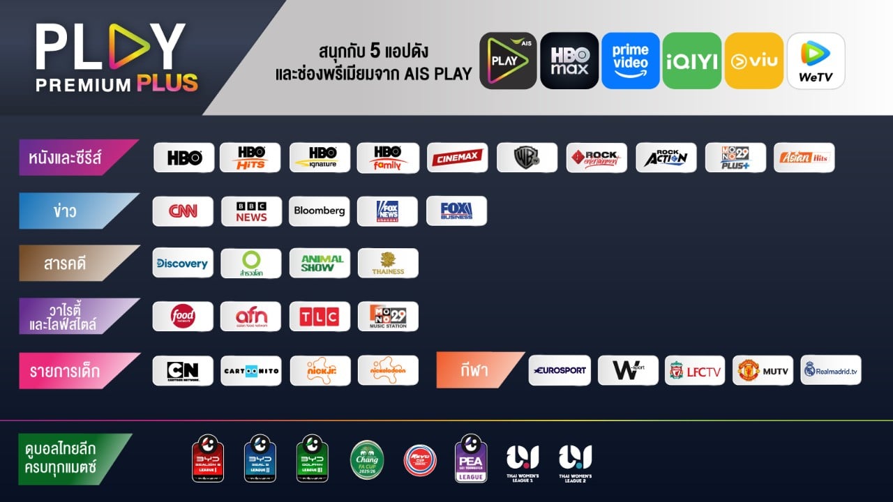 ยกระดับประสบการณ์ความบันเทิงด้วย แพ็กเกจคอนเทนต์ระดับพรีเมียมจาก AIS เข้าถึงภาพยนตร์ รายการทีวี กีฬา และอื่นๆ อีกมากมาย