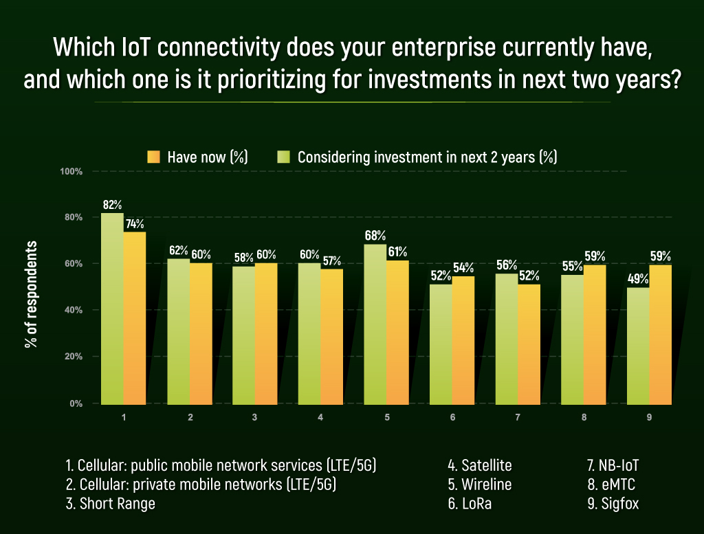 รายงาน Enterprise ICT Investment Trends 2021 Healthcare Sector ได้เผยผลสำรวจของการเลือกใช้เทคโนโลยีโครงข่ายสำหรับ IoT ดังนี้