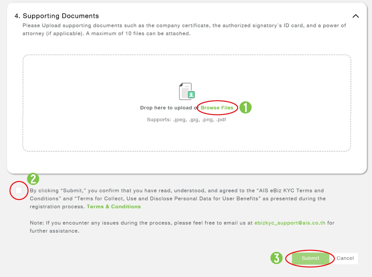 "เพื่อให้การลงทะเบียนบริษัท (Company Registration) ในรูปแบบดำเนินการด้วยตนเอง (self service) ถูกต้องตามข้อกำหนด ตามมาตรการใหม่ของกสทช. ซึ่งกำหนดให้การยืนยันและพิสูจน์ตัวตน สำหรับกรรมการผู้มีอำนาจ หรือผู้ได้รับมอบอำนาจ ต้อง ลงทะเบียนพร้อมยืนยันตัวตนในแอป ThaID ก่อน จึงสามารถดำเนินการพิสูจน์และยืนยันตัวตนด้วยการสแกนใบหน้าผ่านระบบ AIS eBIZ KYC ได้"