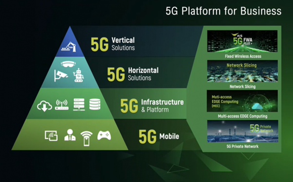 อย่างที่รู้กันว่า AIS Business ได้มีโซลูชันโครงสร้างพื้นฐานและแพลตฟอร์มบน 5G ที่หลากหลาย ไม่ว่าจะเป็น Fixed Wireless Access (FWA), Network Slicing, Multi-Access Edge Computing (MEC) หรือผลิตภัณฑ์ใหม่ล่าสุดอย่าง 5G Private Network ที่สามารถเลือกปรับแต่ง (Customize) เครือข่ายได้ตามความต้องการใช้งาน