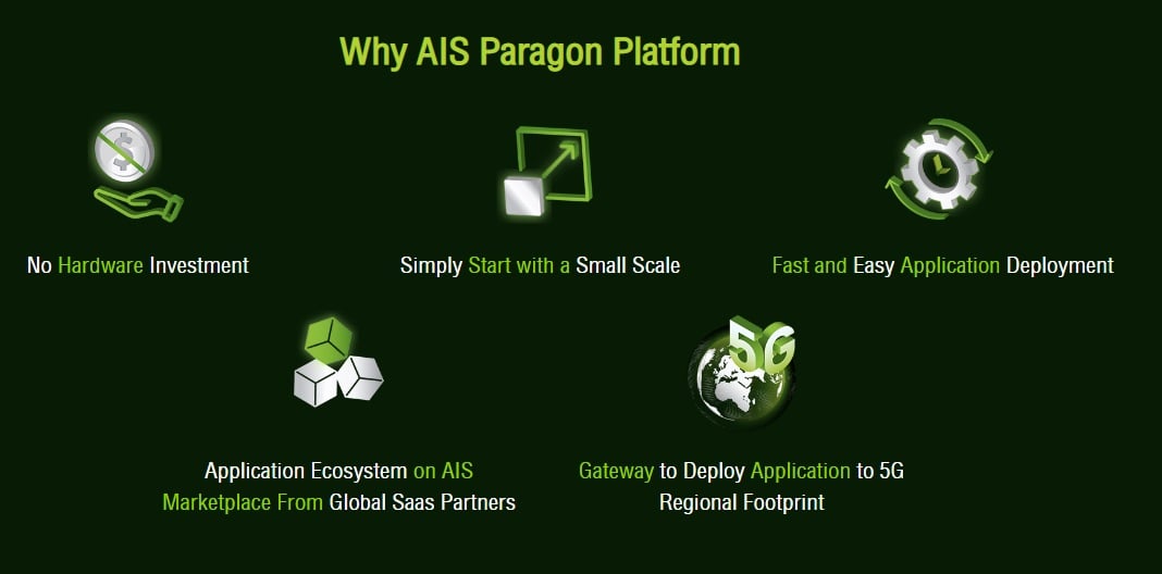 ไอเดียก็คือ AIS ได้จัดตระเตรียมคลาวด์ขนาดย่อม ณ จุดกระจายสัญญาณ 5G ที่อยู่ใกล้กับแหล่งกำเนิดข้อมูล กล่าวคือผู้ใช้งานสามารถเข้าถึงการประมวลผลได้ผ่านสัญญาณ 5G เพื่อตอบโจทย์ Edge Computing โดยซอฟต์แวร์ของการบริหารจัดการที่ครอบอยู่ก็คือ AIS Paragon Platform นั่นเอง