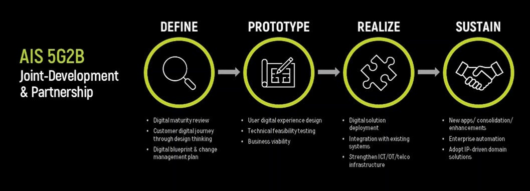 สุดท้ายนี้ AIS 5G พร้อมให้ประสบการณ์และโอกาสใหม่ให้แก่ภาคธุรกิจแล้ว โดยหลายธุรกิจอาจมองเห็นโอกาสแล้วว่าจะเข้าถึงและเริ่มต้นกับ 5G ได้อย่างไร อย่างไรก็ดีหากท่านยังไม่แน่ใจว่า AIS 5G จะตอบโจทย์วิถีการทำงานของท่านหรือไม่ แม้กระทั่งยังไม่ทราบว่าจะมีเทคโนโลยีใดเกิดขึ้นจากโอกาสของ 5G ที่จะเข้ามาแก้ปัญหาของท่านได้ในอนาคต ทาง AIS Business มีความยินดีเป็นอย่างที่จะเป็นพันธมิตรของภาคธุรกิจให้ทุกองค์กรเข้ามาทดสอบหรือให้คำปรึกษา พูดคุยกันเพื่อนำกรณีศึกษาต่างๆ มาต่อยอดเพื่อให้เกิดแนวทางการแก้ปัญหาใหม่ๆให้แก่ผู้ประกอบการในทุกภาคส่วนในประเทศไทย