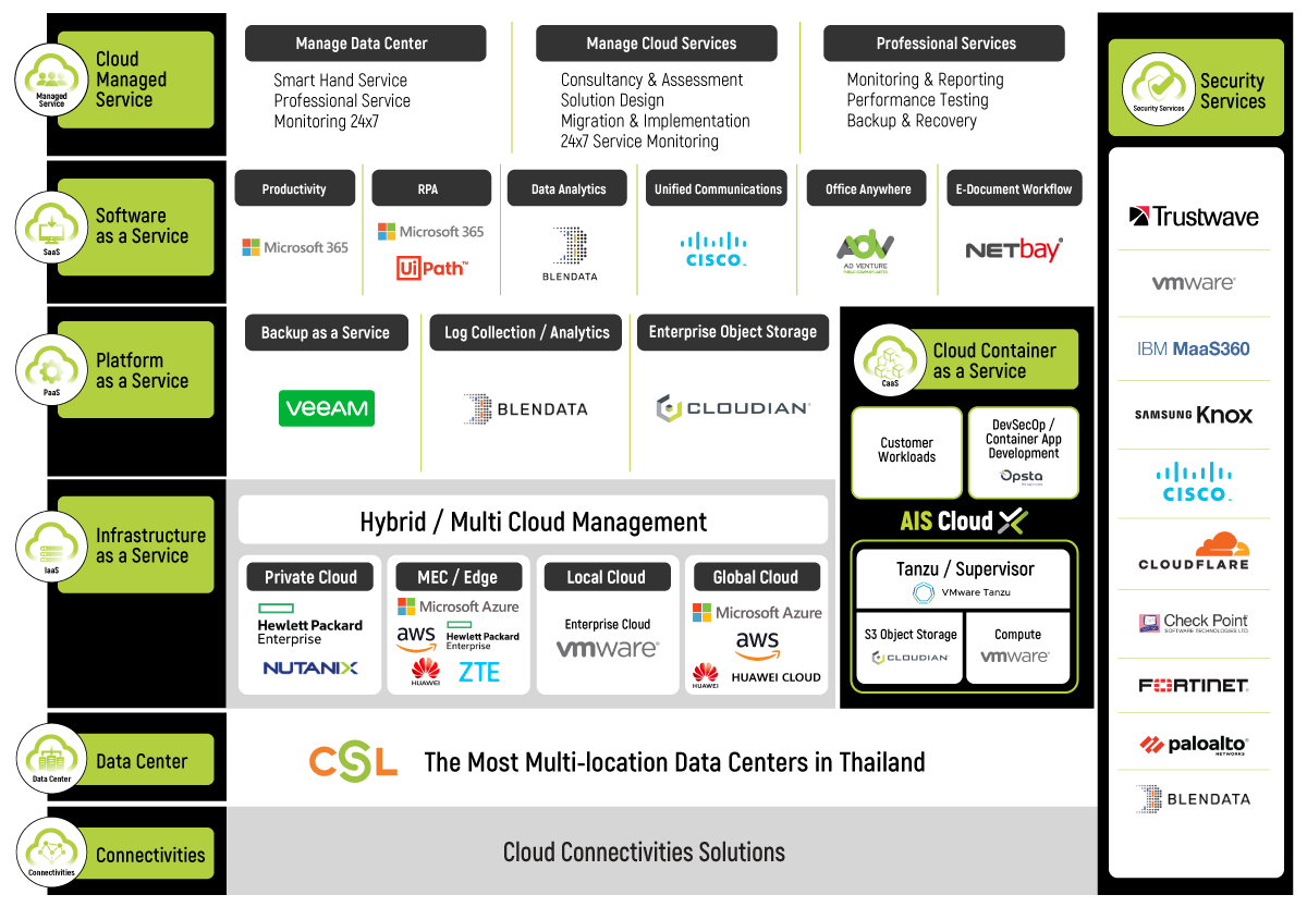 สำหรับเทคโนโลยีคลาวด์ที่เป็นหนึ่งในหัวใจสำคัญของการทำ Digital Transformation นั้น ทาง AIS Business มีโซลูชันให้บริการเช่นกันที่ให้บริการในรูปแบบของ Infrastructure as a Service (IaaS) ด้วยเทคโนโลยีของ VMware NSX จึงทำให้สามารถจัดสรรและตั้งค่าโมดูลต่าง ๆ ได้อย่างยืดหยุ่น เช่น นโยบายความมั่นคงปลอดภัย (Security Policies) หรือเส้นทางเครือข่าย (Network Routing) เป็นต้น
