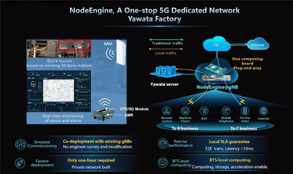 อีกกรณีหนึ่งที่ทาง ZTE ได้มีการทดสอบร่วมกับ AIS Business ก่อนหน้าในปีนี้ คือที่โรงงานยาวาต้า (Yawata) ผู้ผลิตลวดเชื่อมคุณภาพสูง ด้วยการใช้งาน 5G Private Network ร่วมกับ NodeEngine จึงสามารถเปลี่ยนโฉมโรงงานแบบดั้งเดิมให้กลายเป็นโรงงานอัจฉริยะที่มี Latency ต่ำกว่า 10 มิลลิวินาทีได้สำเร็จ