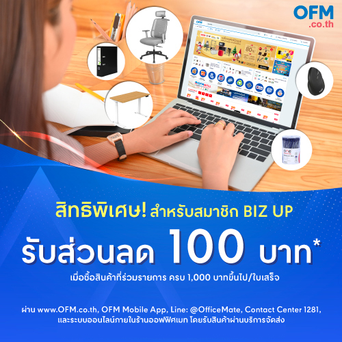 สมาชิก AIS BIZ UP รับส่วนลดมูลค่า 100 บาท สำหรับที่ OfficeMate (ช่องทางออนไลน์)