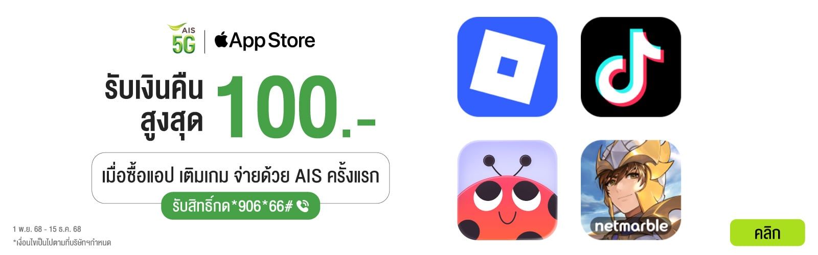 · ความคุ้มครองเป็นไปตามเงื่อนไขในกรมธรรม์ โปรดศึกษาเงื่อนไขกรมธรรม์ก่อนทำรายการชำระเงินผ่านบริการ AIS mPAY Mobile Payment
