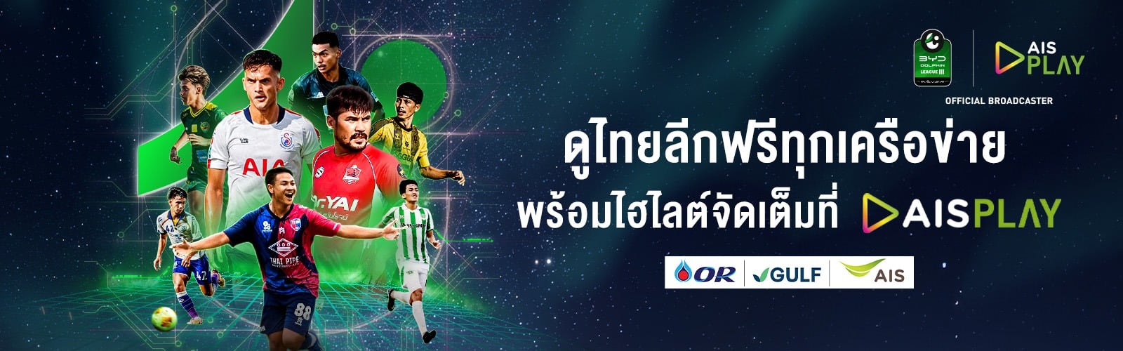ลูกค้าจากทุกเครือข่ายสามารถดูการแข่งขันถ่ายทอดสดฟุตบอลไทยลีกได้ฟรี ทุกลีก ทุกแมตช์การแข่งขัน และรับชมไฮไลท์ฟุตบอลไทยลีกย้อนหลังได้ ผ่านทางแอปพลิเคชัน AIS PLAY