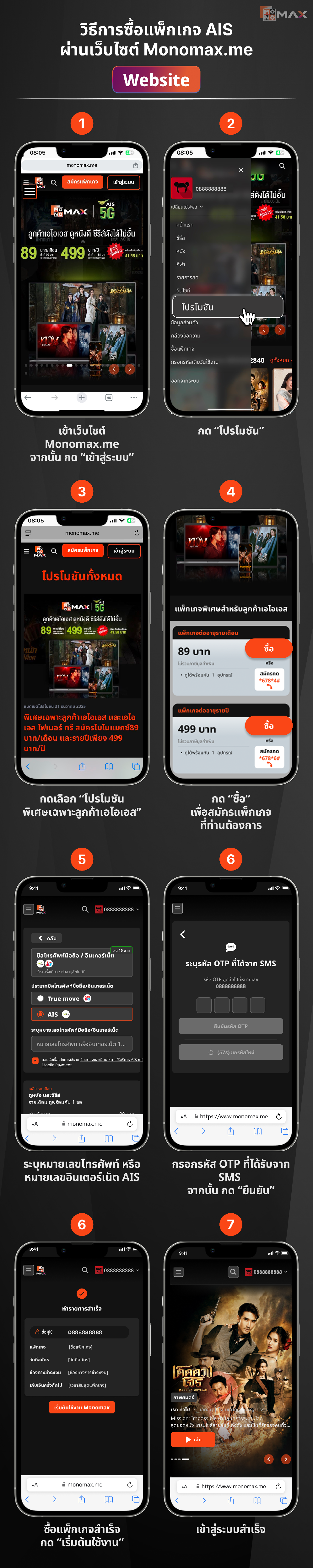 - ไม่สามารถสมัครแพ็กเกจเสริมซ้ำ กรณีมีแพ็กเกจ MONOMAX อยู่แล้ว