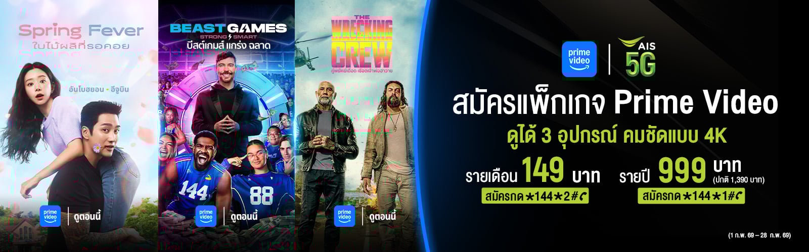 ขอสงวนสิทธิ์เปลี่ยนแปลงเงื่อนไขและรายละเอียดบริการ Prime Video โดยจะแจ้งให้ทราบทางแอปพลิเคชัน myAIS
