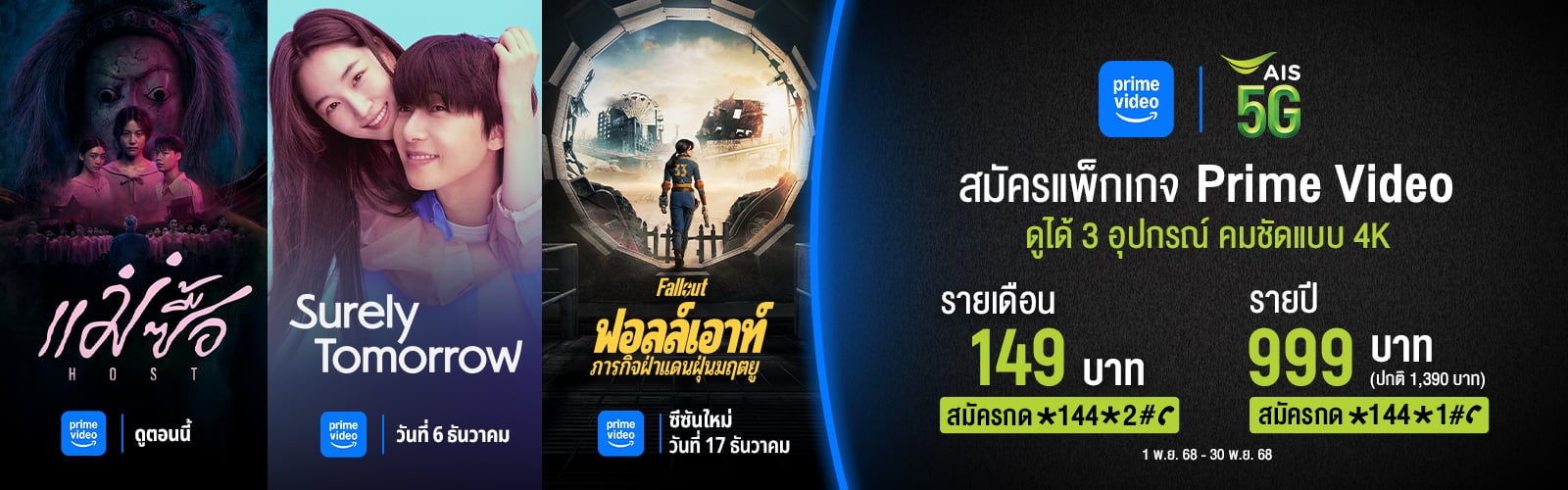 ขอสงวนสิทธิ์เปลี่ยนแปลงเงื่อนไขและรายละเอียดบริการ Prime Video โดยจะแจ้งให้ทราบทางแอปพลิเคชัน myAIS