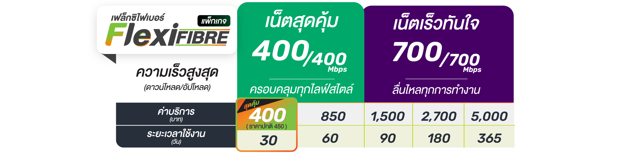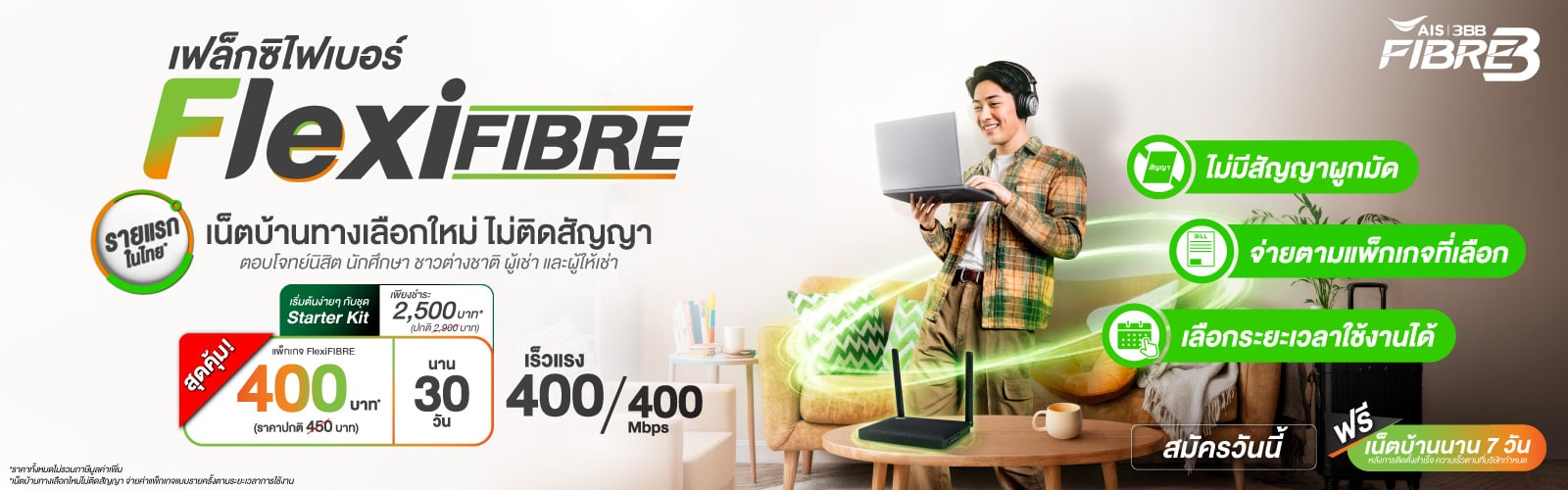 *ราคาสุดคุ้ม ค่าบริการ 400 บาท ระยะเวลาการใช้งาน 30 วัน เฉพาะลูกค้าสมัครตั้งแต่วันที่ 1 เม.ย. - 31 พ.ค. 69