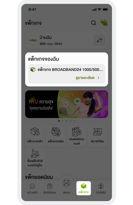 เช็กแพ็กเกจหลัก / เสริม ที่ใช้อยู่ ดูตรงไหน