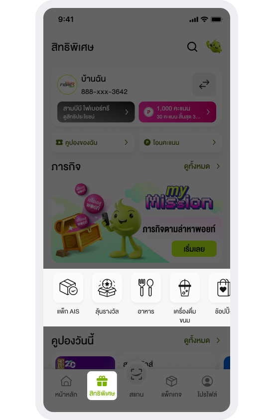 1. ที่เมนู สิทธิพิเศษ เลือกหมวดหมู่ที่สนใจ