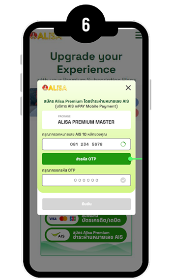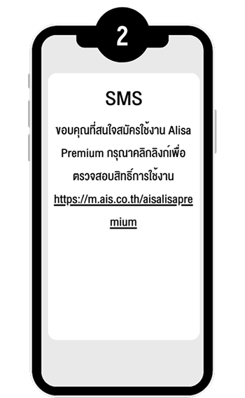 กด USSD *626*2# โทรออก ภายใน 30 วัน หลังได้รับ SMS แจ้งสิทธิ์ จากนั้นยืนยันการสมัครใช้งาน Alisa Premium ผ่านแอป LINE ด้วย OTP