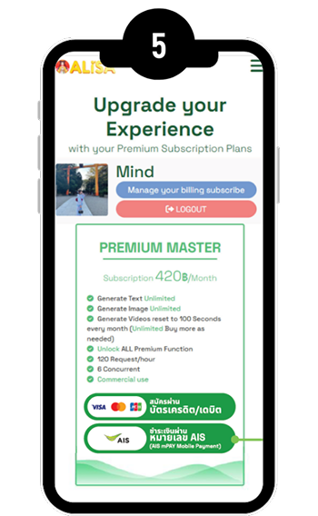 ระบบจะคิดค่าบริการ Alisa Premium เดือนละ 420 บาท (ราคาปกติ) และแจ้งค่าบริการบนใบแจ้งค่าใช้บริการของ AIS
