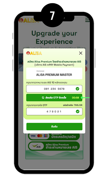 7. ใส่รหัส OTP และกดยืนยัน