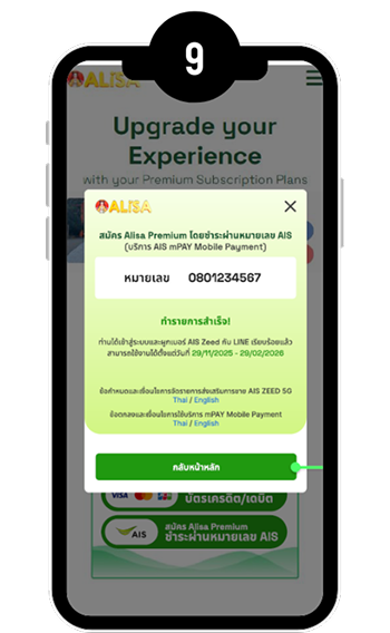เริ่มนับตั้งแต่วันที่ ยืนยันการสมัคร Alisa Premium ผ่าน OTP บน LINE และสมัครสำเร็จ