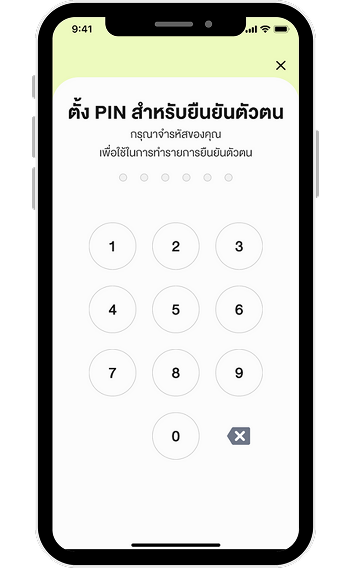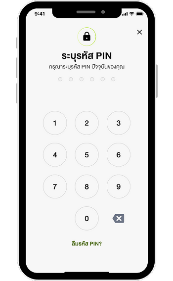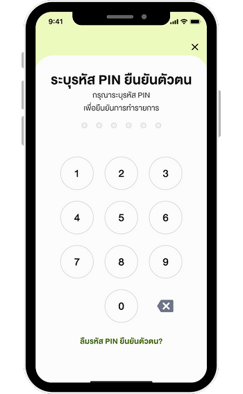 สามารถตั้งรหัส PIN ใหม่ได้ด้วยตนเอง โดยกดปุ่ม “ลืมรหัส PIN” จากนั้นกรอกเลขบัตรประชาชน และถ่ายภาพใบหน้าเพื่อยืนยันตัวตน