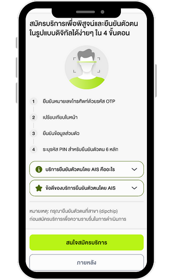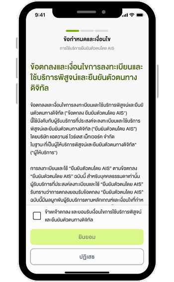 ผู้รับบริการรับทราบว่า ผู้ให้บริการอาจปฏิเสธการลงทะเบียนและใช้ “ยืนยันตัวตนโดย AIS” ได้ หากผู้ให้บริการไม่สามารถพิสูจน์และยืนยันตัวตนของผู้รับบริการได้ ตามเงื่อนไขที่กำหนดไว้ในข้อตกลง “ยืนยันตัวตนโดย AIS” ฉบับนี้