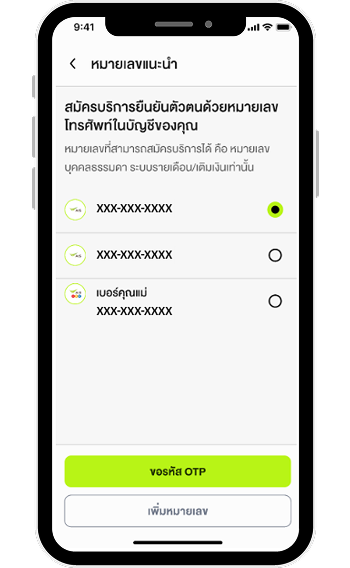 หมายเลขต้องมีสถานะพร้อมใช้งานเท่านั้นค่ะ/ครับ หากเบอร์ถูกระงับการใช้บริการชั่วคราวจะสมัครไม่ได้ เนื่องจากไม่สามารถรับ OTP ได้