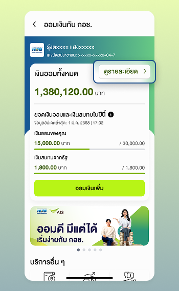*สามารถเปิดบัญชี กอช. บนแอป myAIS ได้เพียง 1 บัญชี ต่อ 1 หมายเลขบัตรประชาชน เท่านั้น
