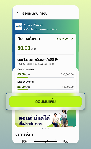 3. เลือกเมนู “ออมเงินเพิ่ม”