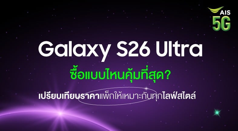 ใครที่กำลังลังเลจะเลือกซื้อ Galaxy S26 Ultra เครื่องเปล่า หรือเลือกซื้อแบบติดโปรที่ AIS แบบไหนดีกว่า วันนี้มีคำตอบ มาดูกันเลย!