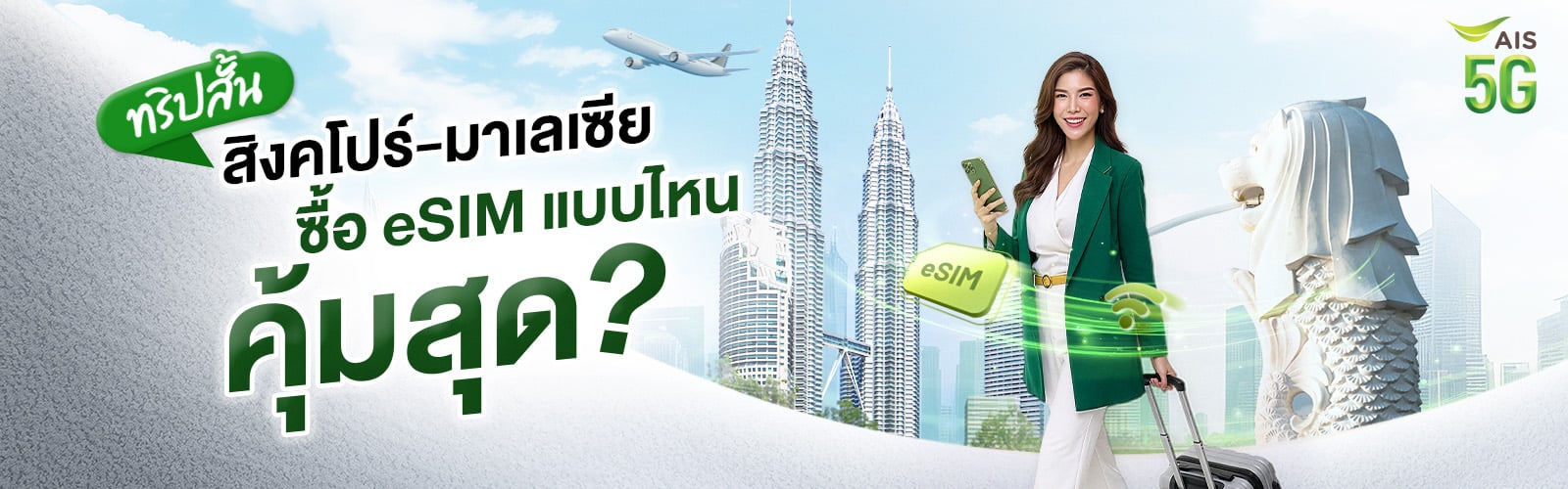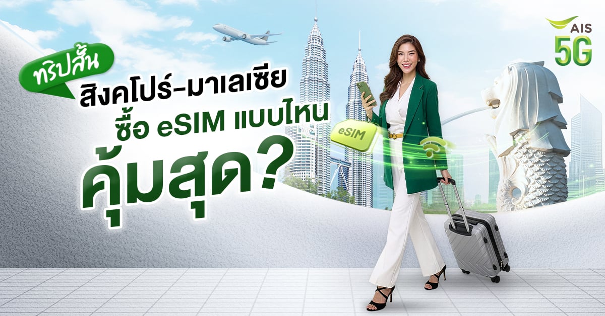 สรุป : เลือก eSIM สำหรับทริปสั้นสิงคโปร์-มาเลเซีย ให้คุ้มที่สุด ควรเลือก eSIM แบบ Multi Country ที่สามารถรองรับการใช้งานได้หลากหลายประเทศในซิมเดียว โดยเฉพาะ AIS eSIM2Fly ที่ออกแบบมาเพื่อตอบโจทย์การเดินทางแบบทริปสั้น ๆไม่เกิน 10 วัน