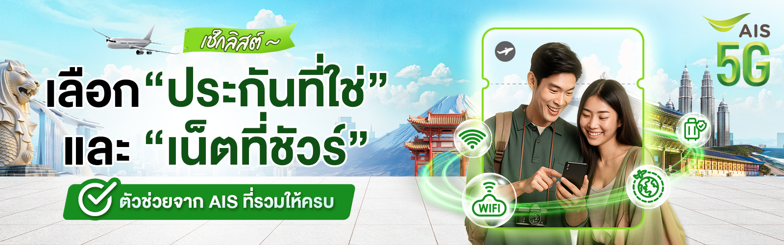 ไม่ต้องซื้อซิมที่สนามบิน ไม่ต้องถอดซิมเดิมออก ซื้อง่ายได้ที่แอป myAIS พอถึงปลายทางก็ใช้งาน อินเทอร์เน็ตได้ทันที ไม่ต้องตั้งค่าให้ยุ่งยาก เรียกว่าสะดวกสุด ๆ เลย