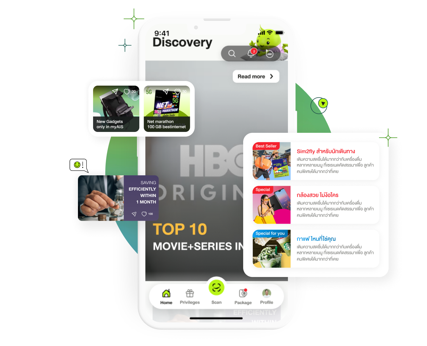 รวบรวมสิทธิประโยชน์หลากหลายที่เหนือกว่า เฉพาะลูกค้า AIS ทั้งกิน เที่ยว ชอปปิง กับร้านค้าพันธมิตรกว่า 1.8 ล้านร้านค้า