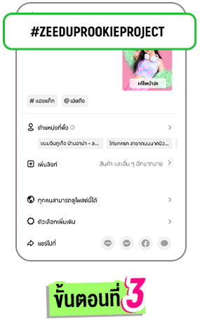 ตั้งค่าโพสต์เป็นสาธารณะ พร้อมติดแฮชแท็ก #ZEEDUPROOKIEPROJECT #AISZEED5G