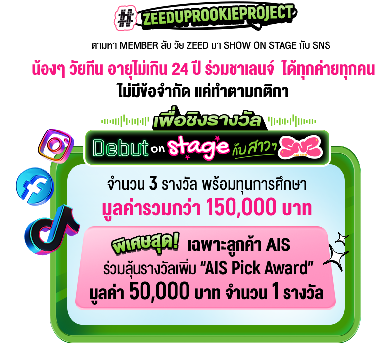 ผู้ชนะการแข่งขัน 3 คน จะได้รับสิทธิ์ขึ้นโชว์ Debut Stage และร่วมถ่าย VDO PERFORMANCE เพลง ZEED UP! (Rookie Project) ร่วมกับศิลปินวง SNS และได้รับเงินรางวัลคนละ 50,000 บาท รวมมูลค่ารางวัลทั้งสิ้น 150,000 บาท