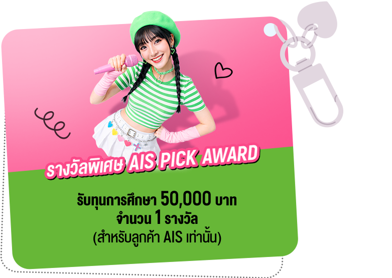 ผู้ได้รับคัดเลือกเป็นตำแหน่ง AIS PICK AWARD จะได้รับรางวัลทุนการศึกษา 50,000 บาท โดยมีเงื่อนไขว่าต้องเป็นผู้ใช้บริการเครือข่าย AIS อยู่ในวันที่ได้รับรางวัล และปฏิบัติถูกต้องตามกติการและเงื่อนไขของกิจกรรมนี้ครบถ้วน