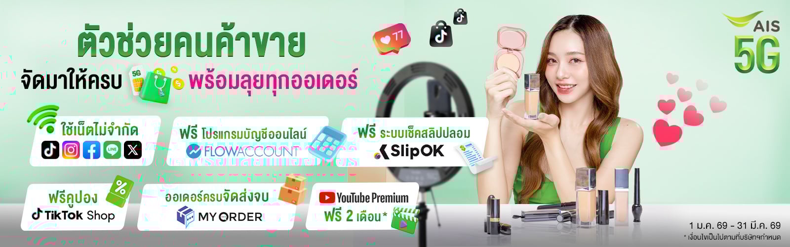 แพ็กเหมาะสำหรับ LIVE สดขายของทาง TikTok Shop ด้วยสปีดเร็วพิเศษ ได้ทุกที่ไม่จำกัด ไม่ตัดเน็ตทั้ง Facebook ,IG, LINE และ X มีทั้งโทรฟรีและเน็ตทั่วไปมีระบบจัดการหลังบ้านและสิทธิพิเศษต่างๆ