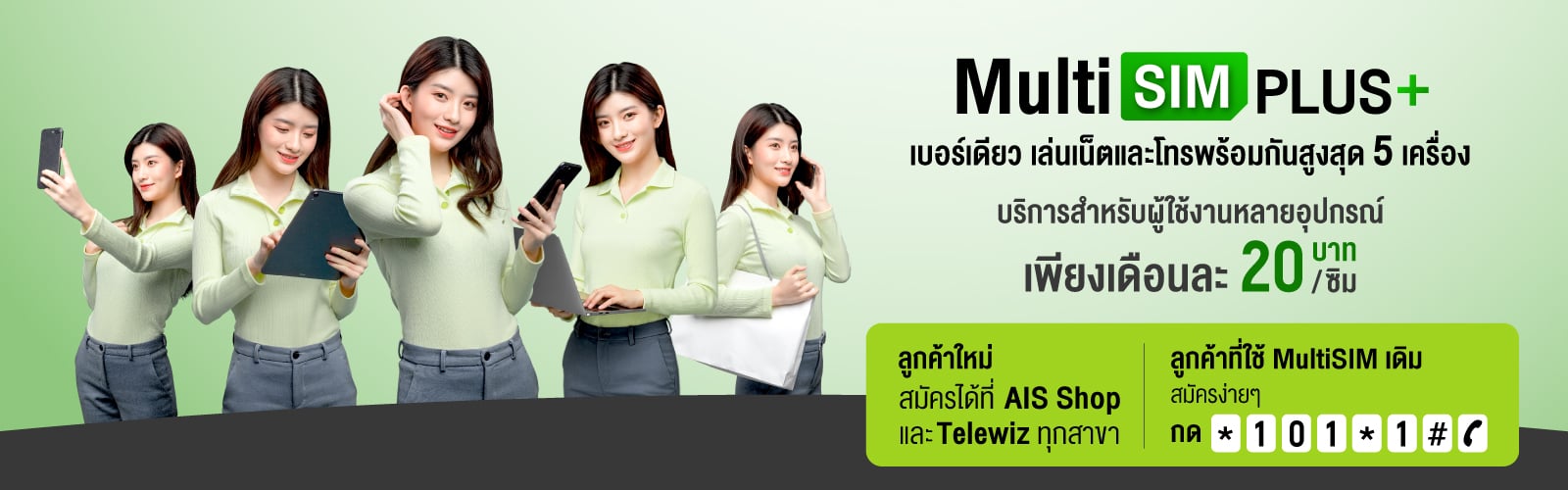 ไม่สามารถใช้งานได้ กรณีที่ต้องการใช้งาน MultiSIM PLUS ลูกค้าจะต้องเปลี่ยนจาก MultiSIM เป็น iMulitISM ก่อนจึงจะสามารถสมัคร MultiSIM PLUS ได้ โดยสามารถแจ้งเปลี่ยนได้ที่ AIS Shop ทุกสาขา