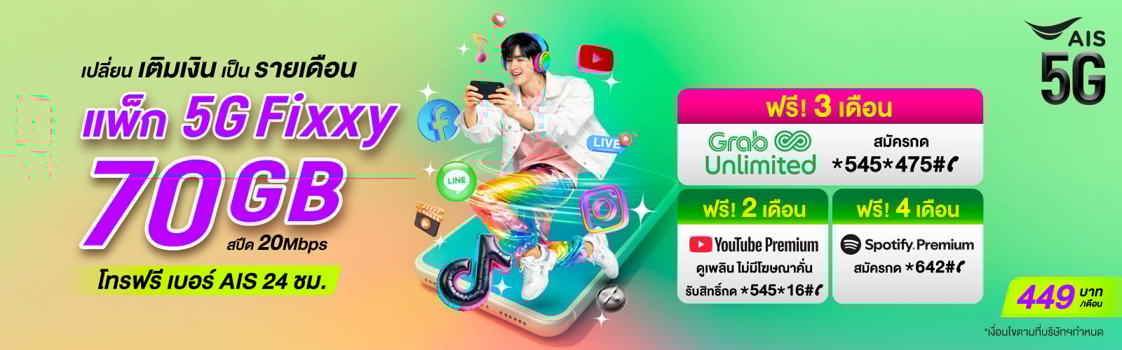 เลือกสมัครรับข้อเสนอ แพ็กเกจ 5G ราคาสุดคุ้ม เน็ตจุใจ โทรฟรีในเครือข่าย AIS