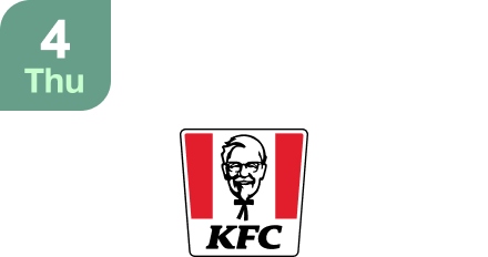 สถานที่รับสิทธิ์: ที่ร้าน KFCทุกสาขา (ยกเว้นสาขาในสนามบินดอนเมือง, ท่าอากาศยานสุวรรณภูมิ)